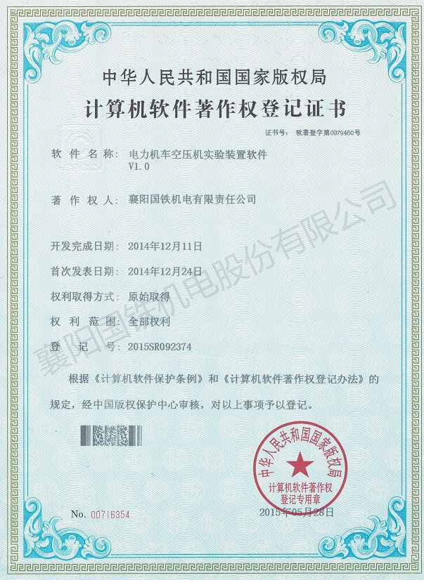 電力機車空壓機實驗裝置軟件(軟件著作權(quán)證書)